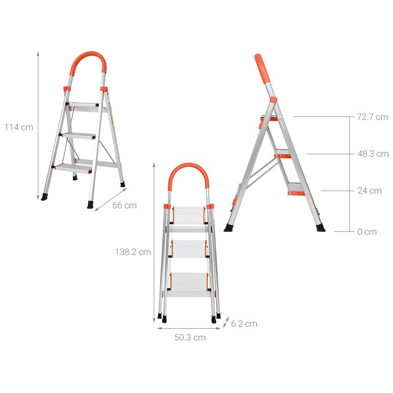 Thang nhôm ghế gia đình 3 bậc Kachi MK-148 được thiết kế khung thang bằng nhôm chắc khỏe nhưng lại rất nhẹ nhàng cho việc di chuyển cân nặng chỉ 3.1kg, chịu được tải trọng lớn lên đến 150kg. Chất liệu nhôm sẽ luôn sáng đẹp, không bị gỉ sét sau thời gian dài sử dụng.Thang nhôm ghế gia đình 3 bậc Kachi MK-148 được thiết kế với sơn tĩnh điện màu trắng cam siêu bền, thiết kế đẹp mắt giúp bạn leo trèo ở những vị trí trên cao để sửa chữa tháo lắp các thiết bị điện hay đơn giản lau chùi các vật dụng trong gia đình, văn phòng hoặc làm giá đựng đồ đạc.