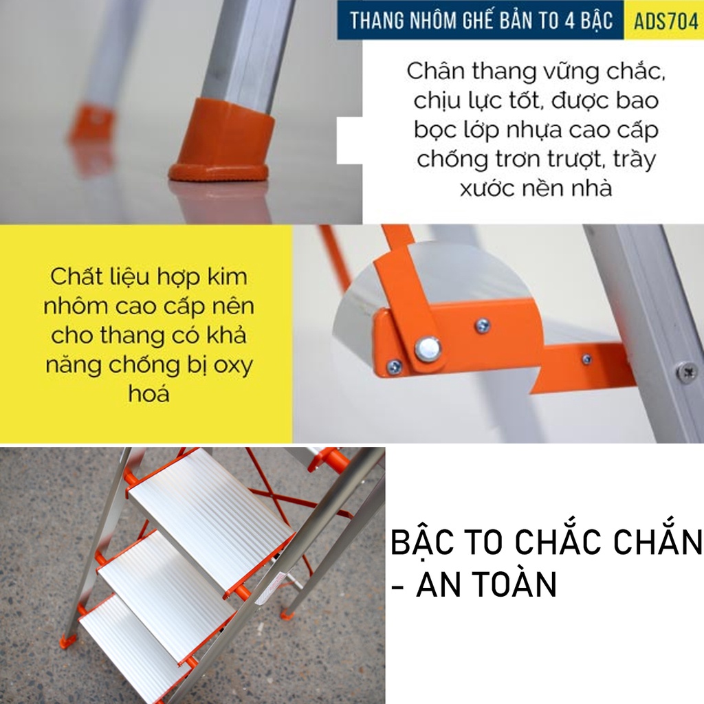 Thang nhôm ghế bản to 4 bậc ADVINDEQ ADS-704