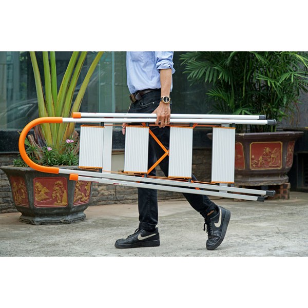 - Thiết kế linh hoạt, tiện lợi, dễ di động hơn so với các dòng thang khác, đặc biệt thang có thể dựng trên nhiều địa hình khác nhau mà không cần điểm tựa, thang vẫn đứng vững vàng, không bị rung lắc.