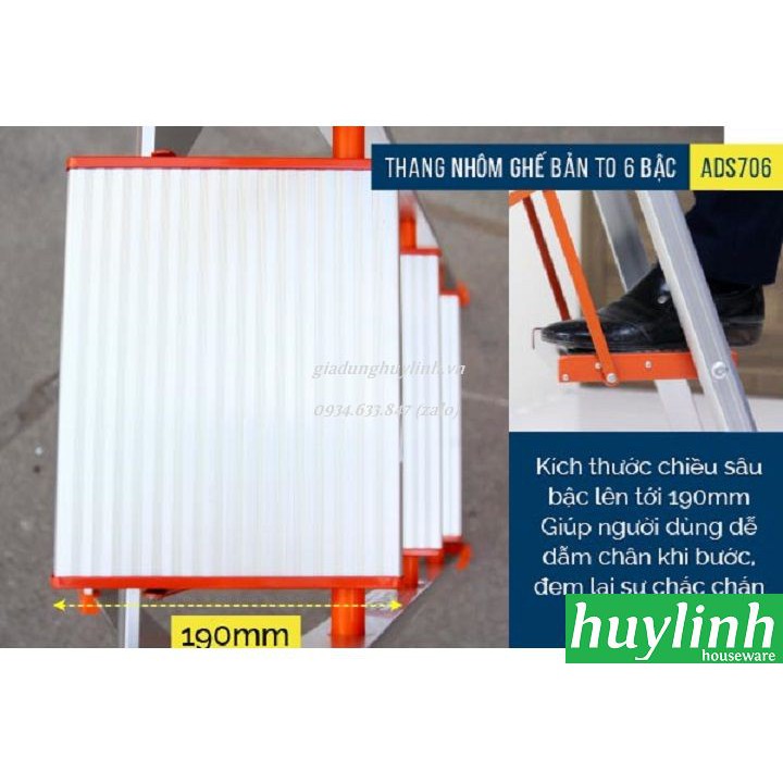 Thang nhôm ghế Advindeq ADS-705 có 5 bậc bản to, chiều cao bậc cao nhất 117cm tiện lợi, thang được thiết kế từ hợp kim nhôm cao cấp.Huy Linh phân phối và bảo hành chính hãng Advindeq Việt Nam