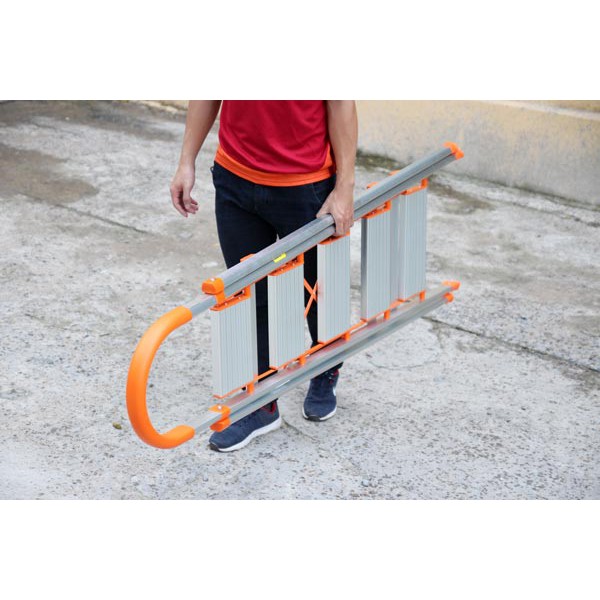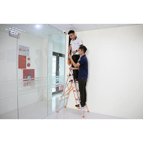 - Thang làm bằng hợp kim nhôm, nhẹ nhàng, thiết kế linh hoạt, tiện lợi, dễ di động hơn so với các dòng thang khác, đặc biệt thang có thể dựng trên nhiều địa hình khác nhau mà không cần điểm tựa, thang vẫn đứng vững vàng, không bị rung lắc.