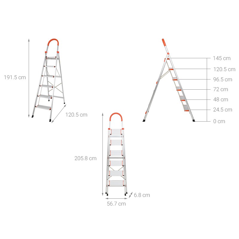 Thang nhôm gấp 6 bậc xếp gọn bản to Kachi MK-151 còn có thể làm vật trang trí, bày đồ phía trên, rất thích hợp cho các cửa hàng thời trang vừa dùng để trèo lên cao, khi không sử dụng có thể làm nơi trang trí bày các sản phẩm rất bắt mắt và sang trọng.