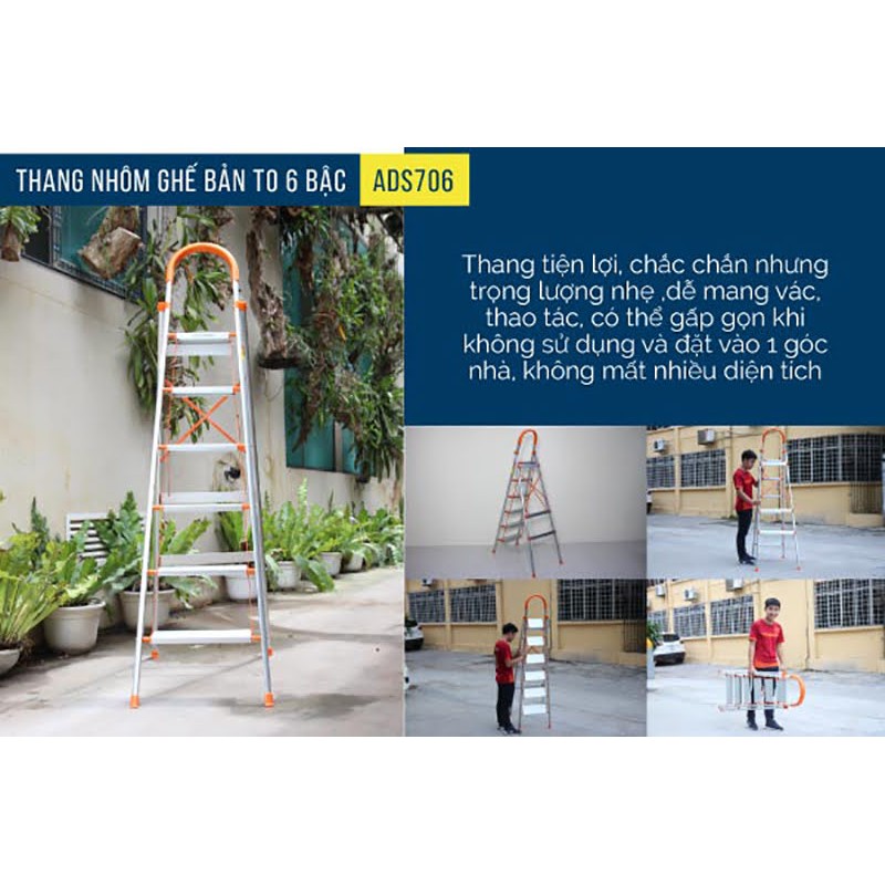 Thang nhôm ghế 6 bậc xếp gọn Advindeq ADS706