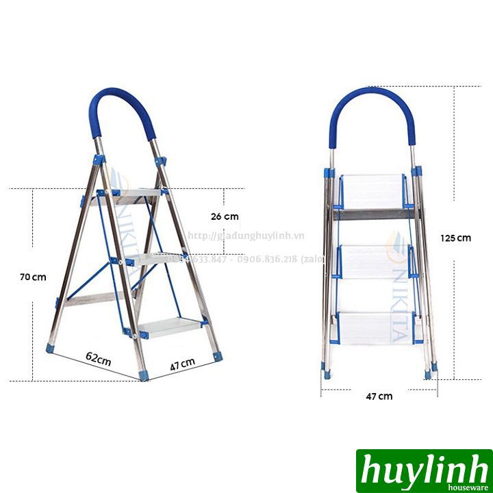 Thông số kỹ thuật Thang nhôm ghế Nikita NKT-DL03 - 3 bậc