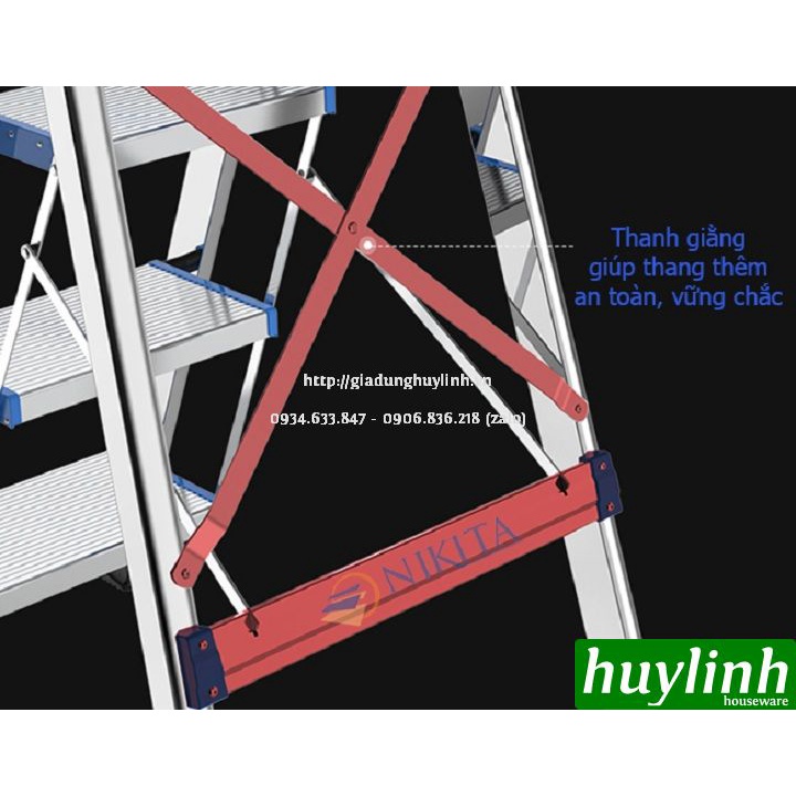 - Thang ghế nhôm Nikita có độ bền chắc chắn, tải trọng cao, an toàn sử dụng, đặc biệt rất thích hợp cho phụ nữ và người già.