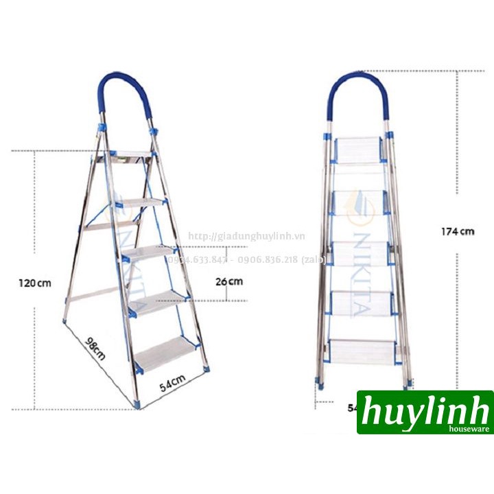 Thang nhôm ghế bản lớn Nikita NKT-DL05 - 5 bậc - 120cm