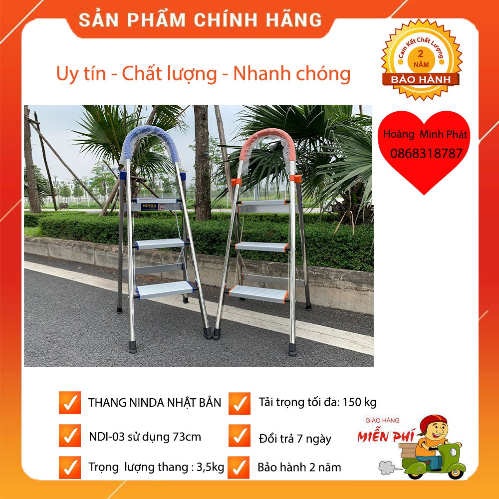 THANG NHÔM GHẾ CHUNG CƯ NINDA NHẬT BẢN INOX NDI-03 - 3 bậc❤️Chiều cao sử dụng : 73 cm tính từ mặt đấtThương Hiệu: NINDA Nhật Bản