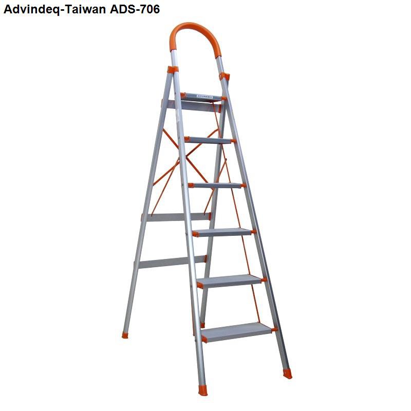Thang nhôm ghế gấp gọn 6 bậc nhập khẩu ADVINDEQ ADS-706 ( Chiều cao bậc trên 1.4m) bảo hành 2 năm