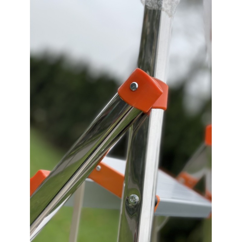 Mỗi bậc thang được cố định bởi hai đinh tán, bậc thang rộng tạo cảm giác thoải mái và an toàn khi lên xuống trong quá trình sử dụng. Chân thang được kết cấu bền chắc, bọc nệm bằng nhựa ABS bền chắc, an toàn, hạn chế trơn trượt, bảo vệ nền nhà không bị trầy xước.