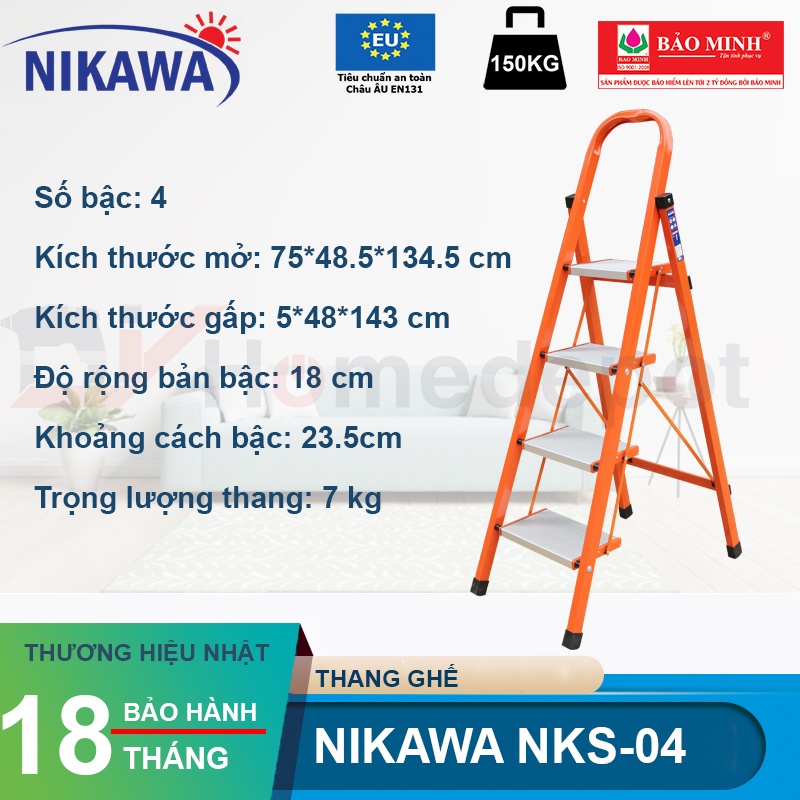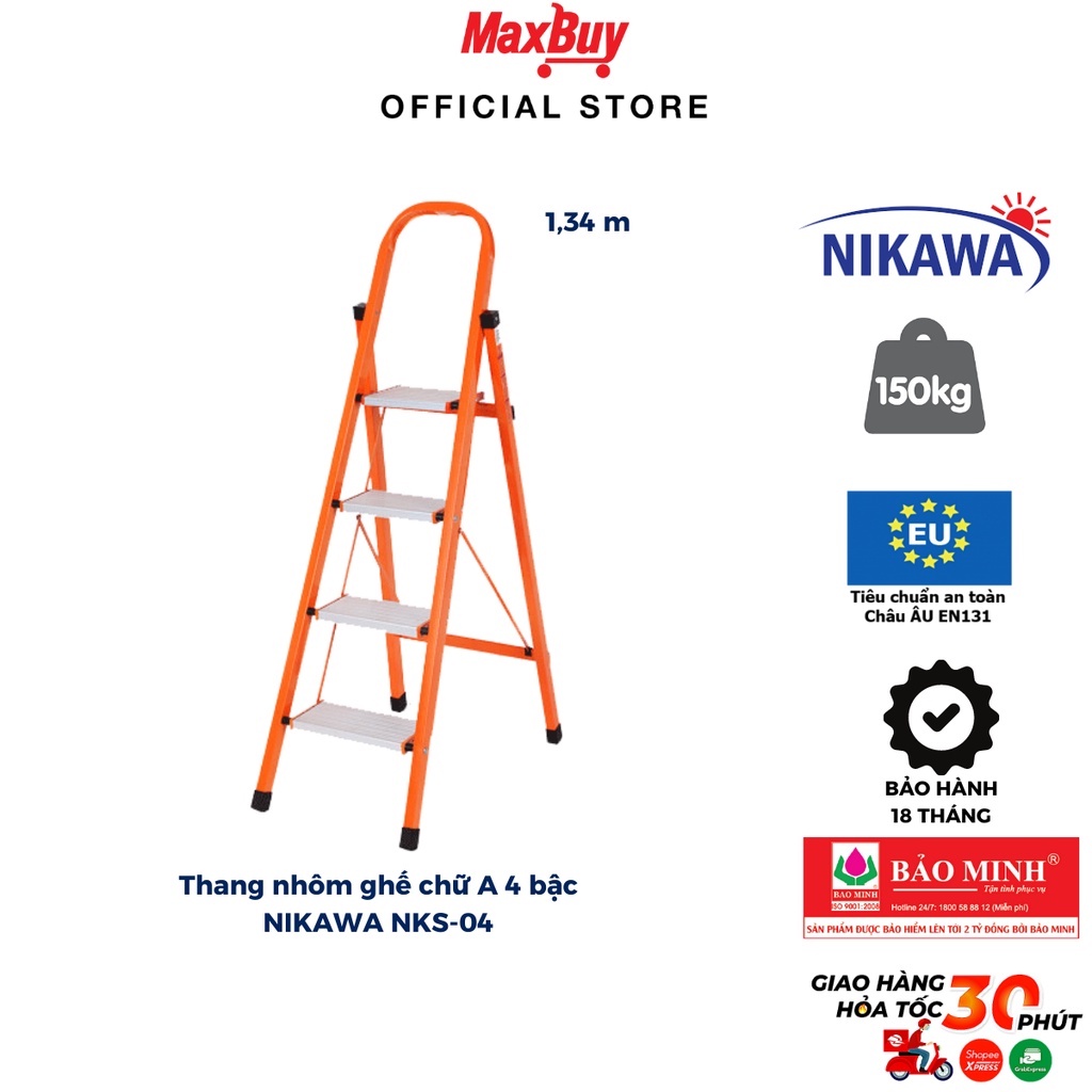 Giới thiệu Thang nhôm ghế gia đình chữ A gấp gọn Nikawa NKS-04, 4 bậc, nhập khẩu Nhật Bản, bảo hành 18 tháng chính hãng