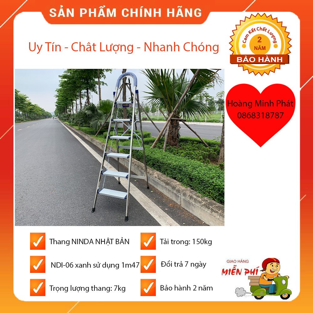 Nhà cửa & Đời sống > Dụng cụ & Thiết bị tiện ích > Thang || THANG NHÔM GHẾ NHẬT BẢN NINDA 6 BẬC XANH. Bảo hành 2 năm. Chiều cao sử dụng : 147 cmCòn hàng