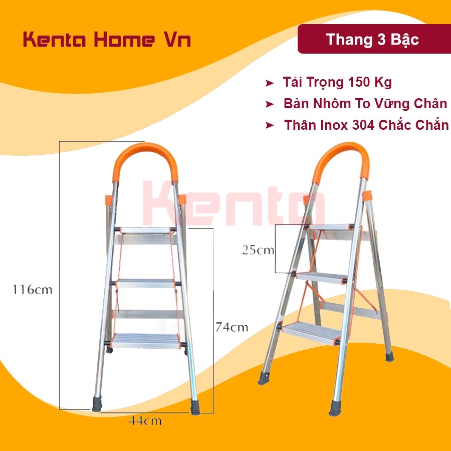 ✔️ Thang 3 Bậc - Bậc trên cùng cao 74cm - Chiều cao khi mở 116cm - Khoảng cách giữa các bậc 25cm - Tải trọng 150Kg