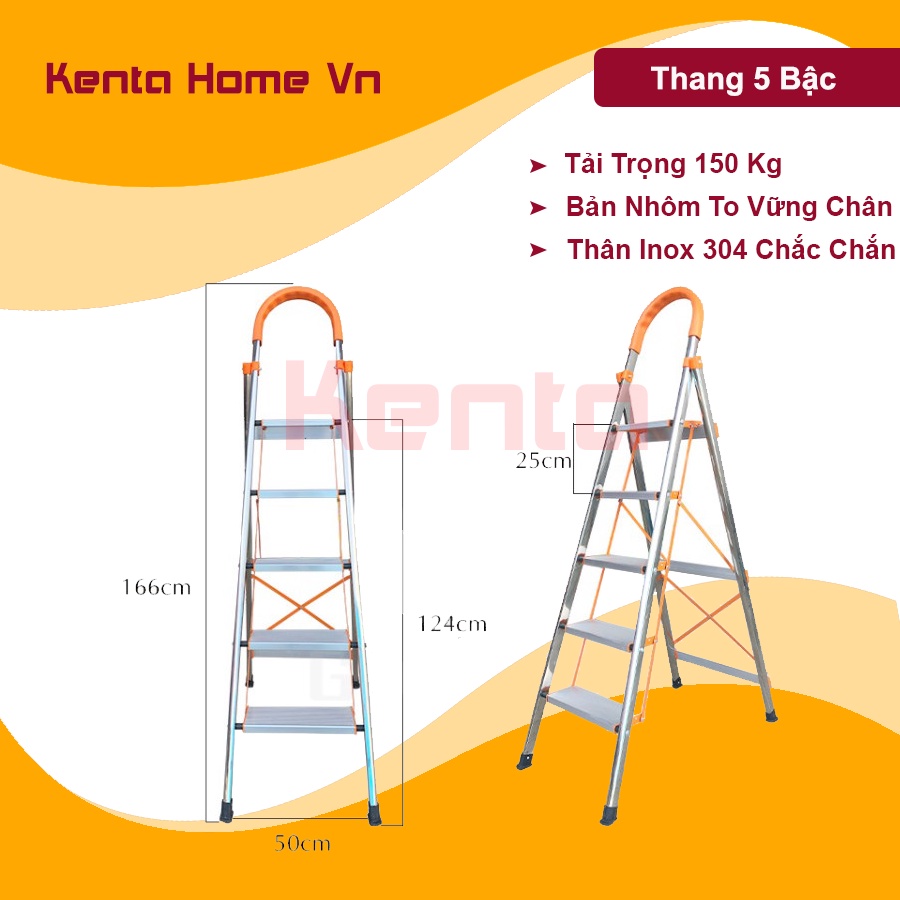 ✔️ Thang 5 Bậc - Bậc trên cùng cao 124cm - Chiều cao khi mở 166cm - Khoảng cách giữa các bậc 25cm -Tải trọng 150Kg