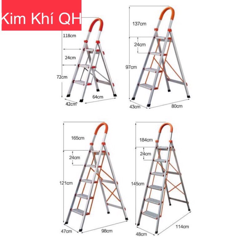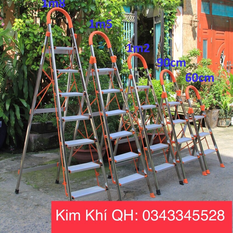 Loại 5 bậc- chiều cao bậc trên cùng 1.2 m - kt thu gọn1.74 x 0.54 x 0.06m - trọng lượng 6 kg - tải trọng 150 kg✔️ Thang ghế Inox là dòng thang ghế nhỏ gọn nhẹ nhàng đang được ưu chuộng để dùng trong các gia đình, văn phòng có diện tích nhỏ gọn hiện nay. Thang được thiết kế với độ thẩm mỹ cao, độ dày của khung và bậc đều cao nên mang lại cảm giác rất chắc chắn, khung thang được làm từ Inox nên độ chịu lực rất lớn và có màu sắc sáng bóng tạo được độ sang trọng và rất thích hợp dùng trong căn nhà hay văn phòng của bạn. Thang rất thích hợp dùng trong nhà, cho các căn hộ thắp nhang bàn thờ, lau dọn nhà cửa quạt, đèn, văn phòng, các công ty để thu xếp các vật dụng, lau dọn những chỗ trên cao.