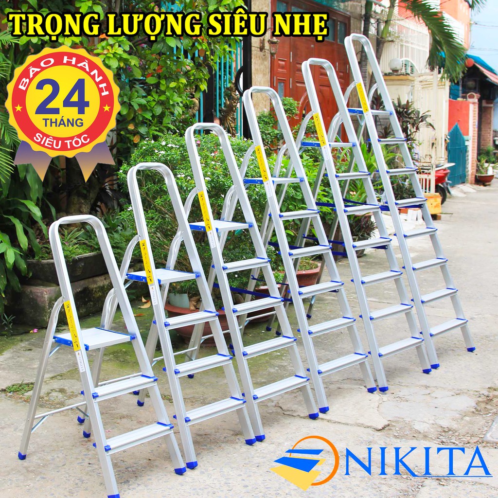 Thang nhôm ghế tay vịn Nikita từ 3 bậc đến 8 bậc AL03,AL04,AL05, AL06, AL07, AL08 (BẢO HÀNH 2 NĂM)