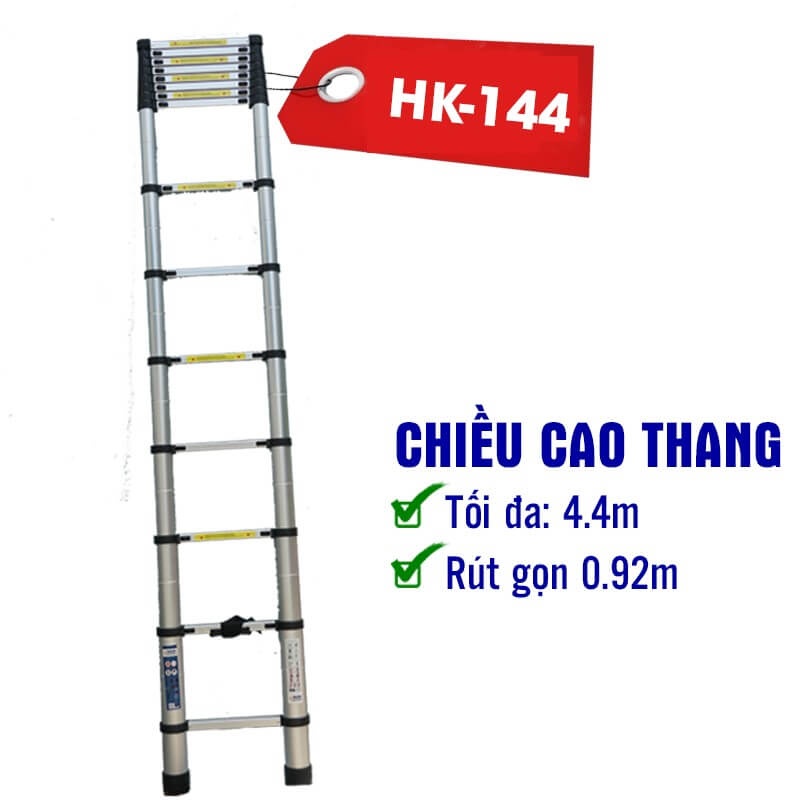 Thang nhôm rút đơn HK - 144 có thể chịu trọng tải lên đến 300kg.