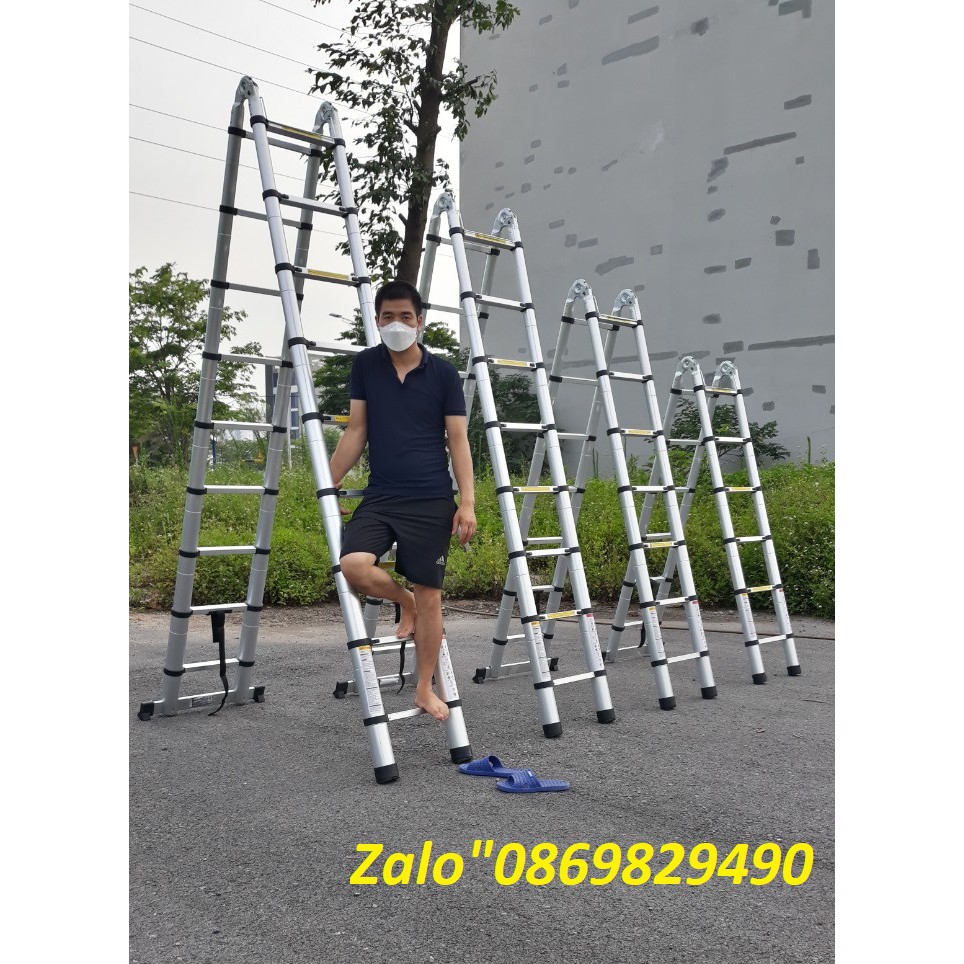 Giới thiệu THANG NHÔM RÚT ĐÔI 5.6M ( 2M8 + 2M8 ) NHẬT BẢN - BH 2 NĂM Mới 2022