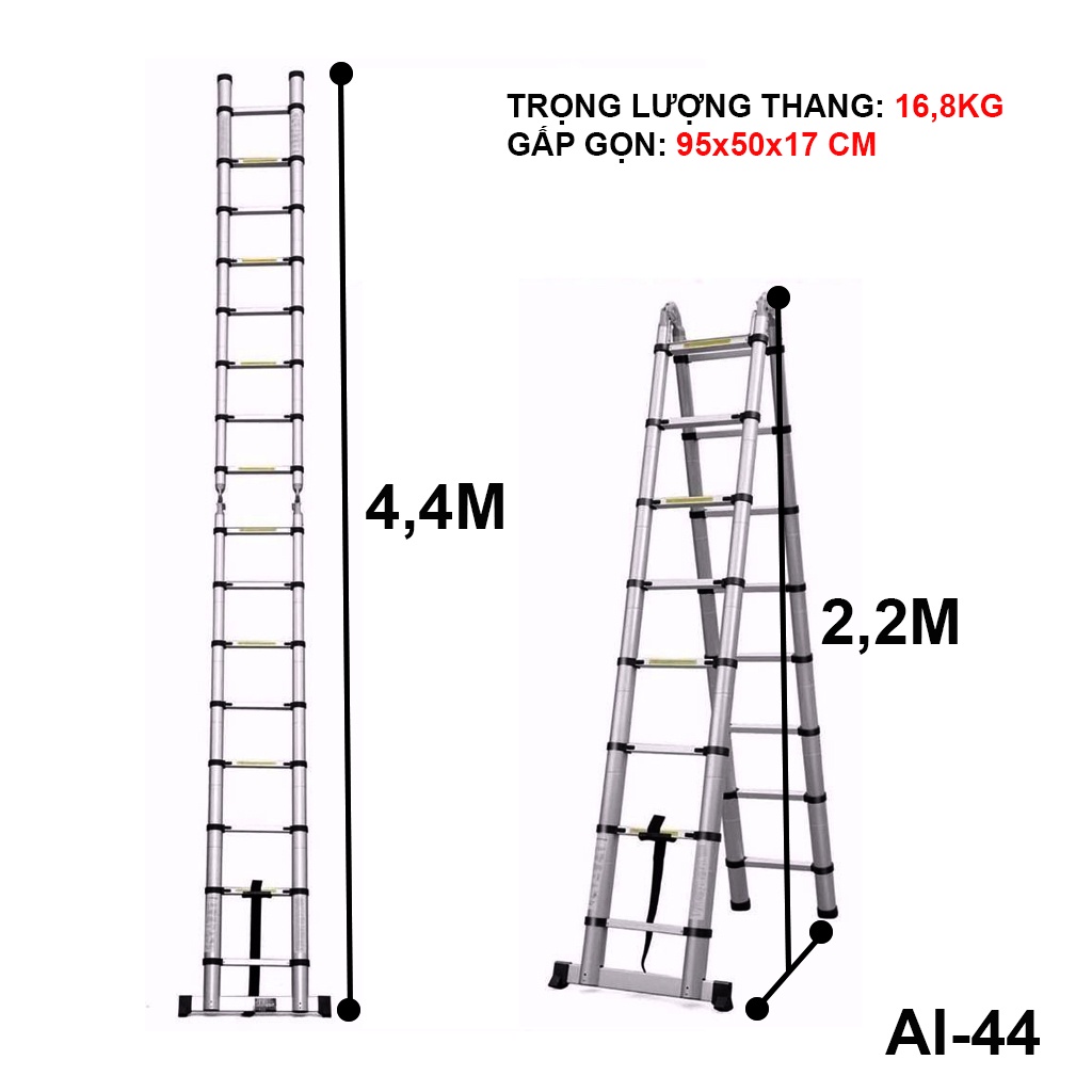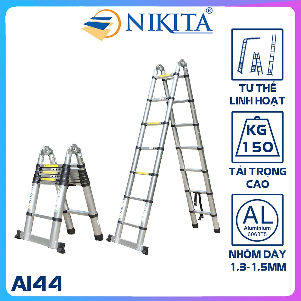 Nhà cửa & Đời sống > Dụng cụ & Thiết bị tiện ích > Thang || Thang nhôm rút chữ A ( 2m2 + 2m2 ) - Chính hãng NIKITACòn hàng