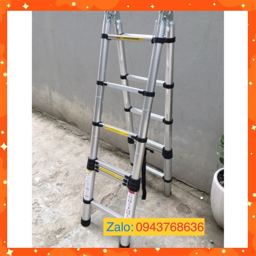Thang Nhôm Rút Chữ A 3.8M (1.9+1.9)M - Thang Gấp Gọn Dễ Dàng [Tặng 2 Chốt Thang]