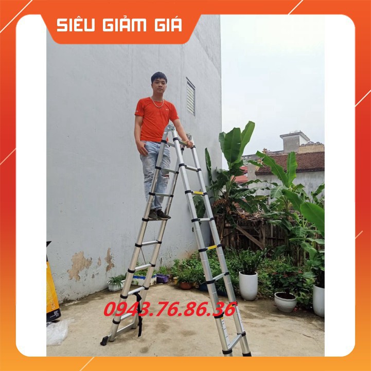 THANG NHÔM RÚT CHỮ A 4.4M ( 2.2m + 2.2m) - BH 24 THÁNG [Tặng 2 Chốt Thang]