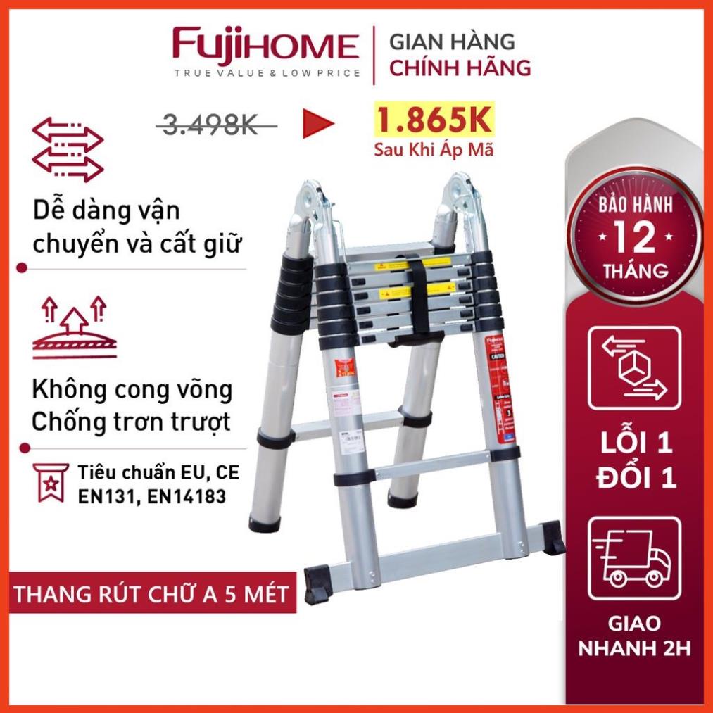 Thang nhôm rút chữ A FUJIHOME 3,8M - 5M gấp gọn chính hãng, thang rút đơn xếp gọn gia đình đa năng, thương hiệu Nhật Bản