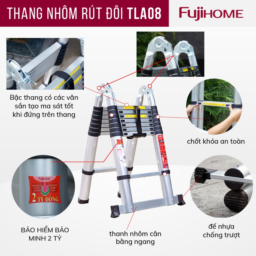 ✅ THANG NHÔM RÚT GỌN (CHỮ A) FUJIHOME TLA08