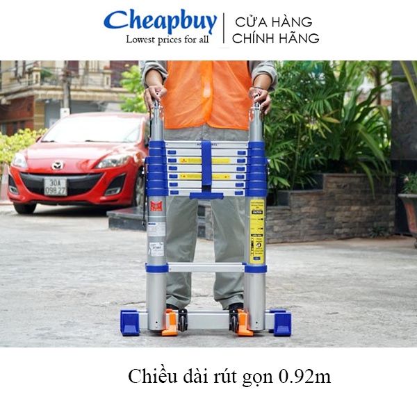 Giới thiệu Thang nhôm rút chữ A nhập khẩu 5M gấp gọn chính hãng ADVINDEQ ADT708BN chống trượt, bánh xe di chuyển -Bảo hành 2 năm