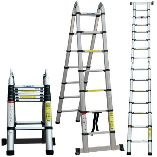 - Thang nhỏ nhẹ, gọn. Có thể sử dụng ở ngoài trời, và có thể được gấp lại đặt bất cứ nơi nào trong phòng hoặc xe chở.
