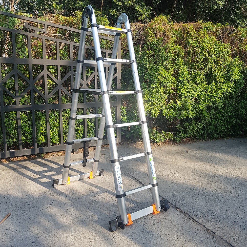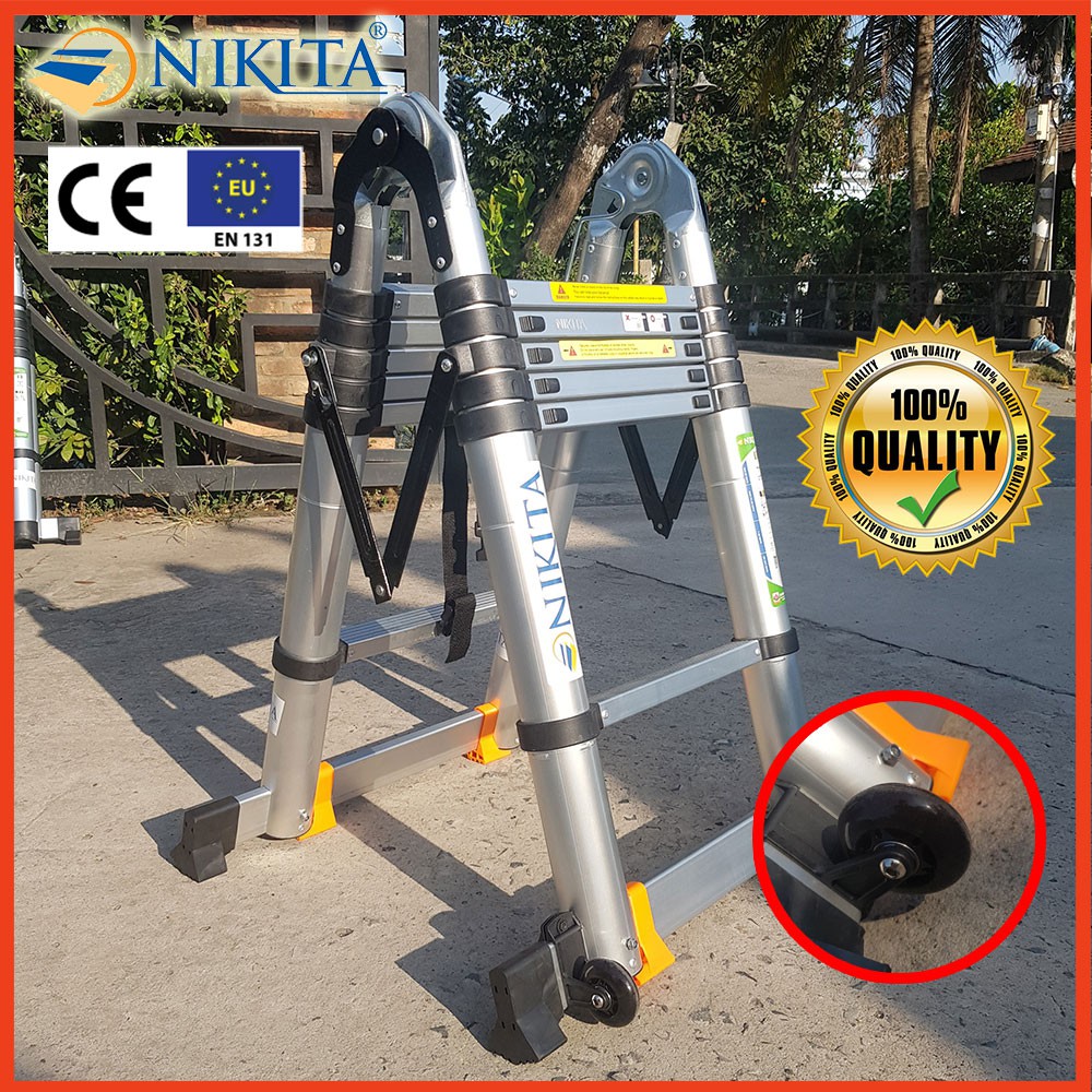 Thang nhôm rút đa năng có bánh xe 6.4 Mét - Hàng chính hãng Nikita