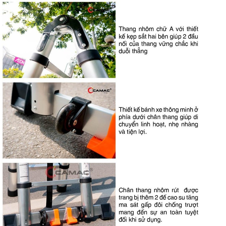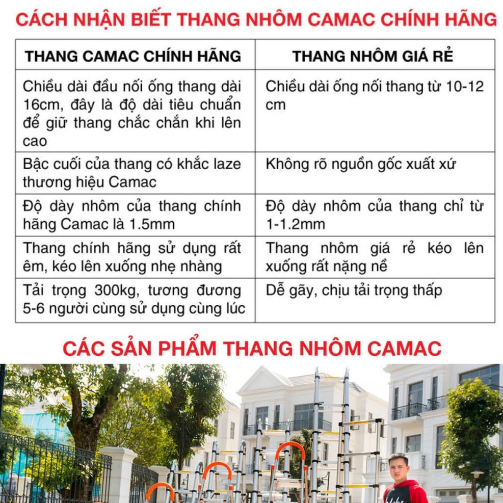 --------------------------------------- ĐẶC ĐIỂM NỔI BẬT SO VỚI MẪU THANG THÔNG THƯỜNG ---------------------------------- Thang được cải tiến mới với Nhôm 8030 Cao cấp hơn nhôm C6030