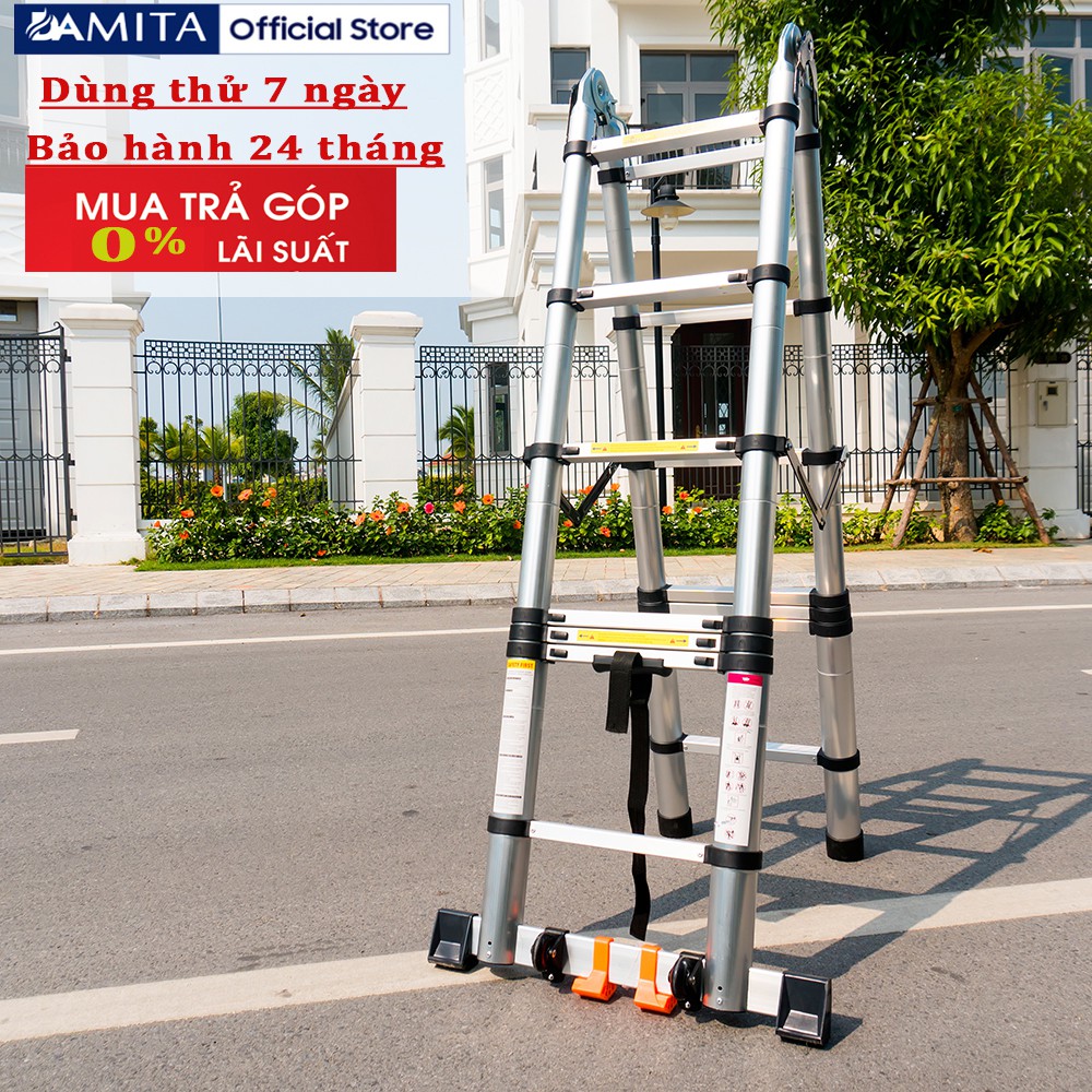 Thang Nhôm Rút Đôi 3met2 DAMITA cao cấp có bánh xe , khung giữ thang nhập khẩu thương hiêu bảo hành 24 tháng