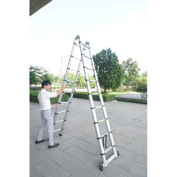 Thang nhôm rút đôi hay còn gọi là thang nhôm rút chữ A là dòng thang thông minh nhất hiện nay. Thang nhôm rút đôi được làm bằng chất liệu nhôm, có thể linh động rút ngắn hay kéo dài các ống để sử dụng thế thang chữ A và tăng chiều cao thang thành thang rút đơn.