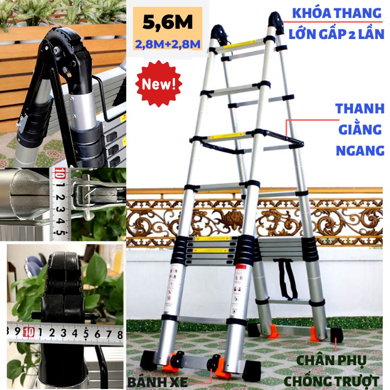 Thang nhôm rút đôi cao cấp (Chữ A: 2,8m; Chữ I: 5,6m) Sumika SK560D NEW