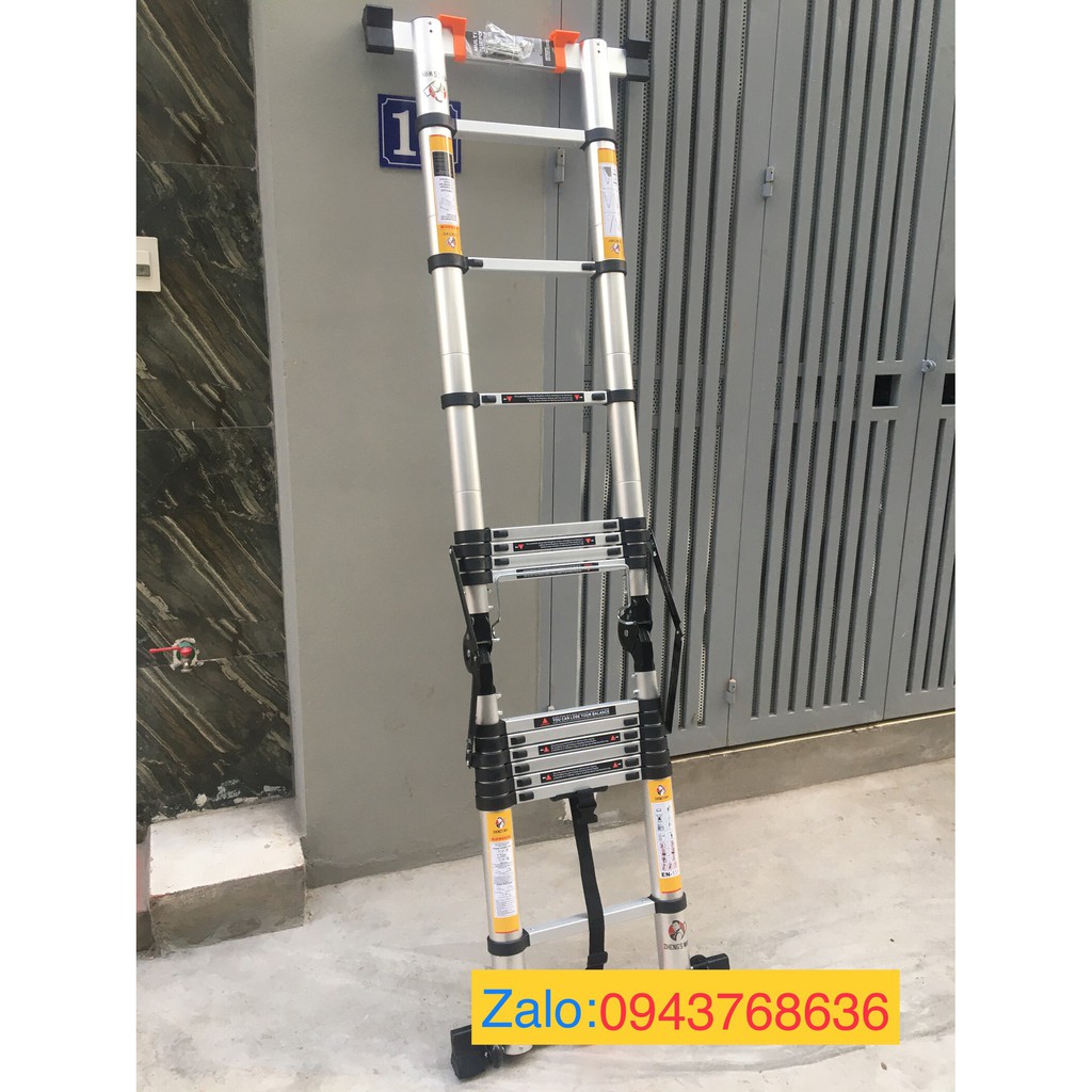 Thang Nhôm Rút Đôi Chữ A (2.2M+2.2M) - Có Bánh Xe