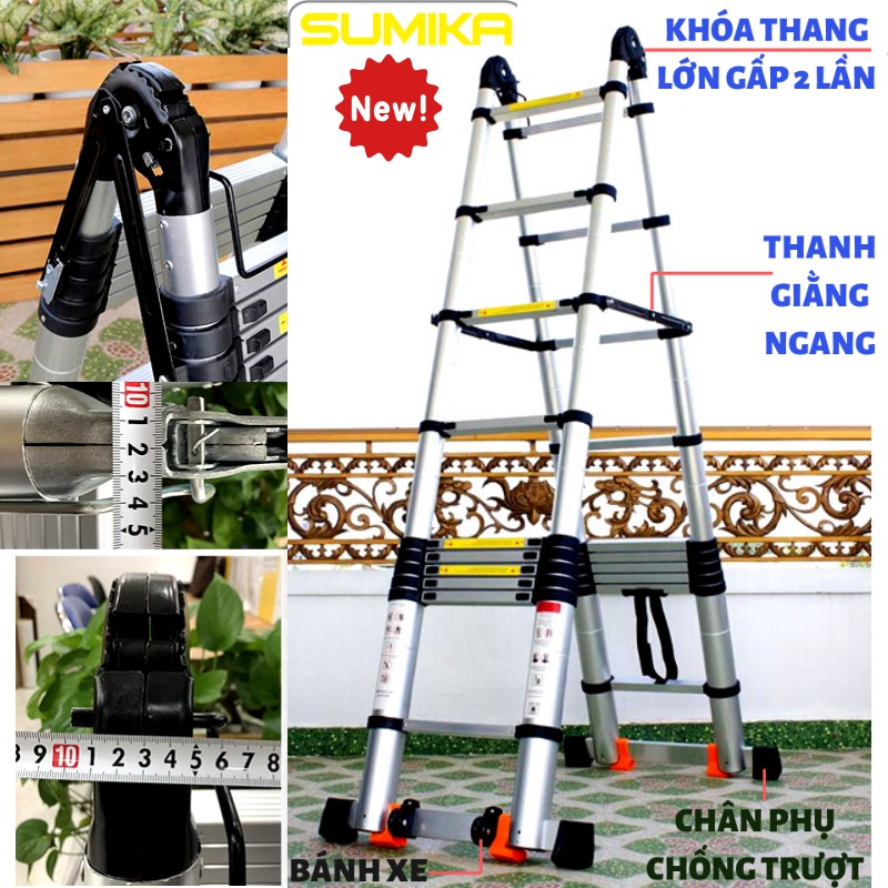 Nhà cửa & Đời sống > Dụng cụ & Thiết bị tiện ích > Thang || Thang nhôm rút đôi (Chữ A: 2,2m; Chữ I: 4,4m) Sumika SKS440D SK440DNEWCòn hàng