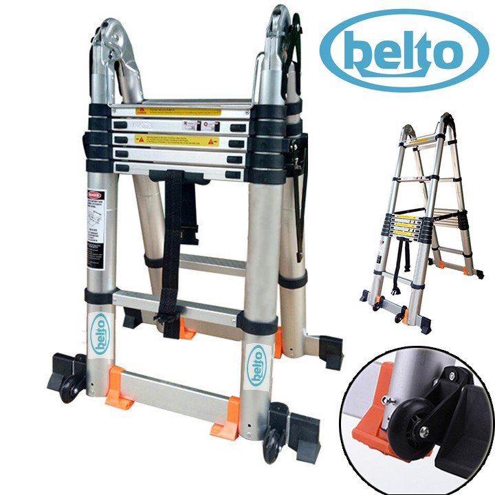 Nhà cửa & Đời sống > Dụng cụ & Thiết bị tiện ích > Thang || Thang nhôm rút đôi chữ A, BELTO AID44, Chiều cao tối đa 4m4 có bánh xeCòn hàng