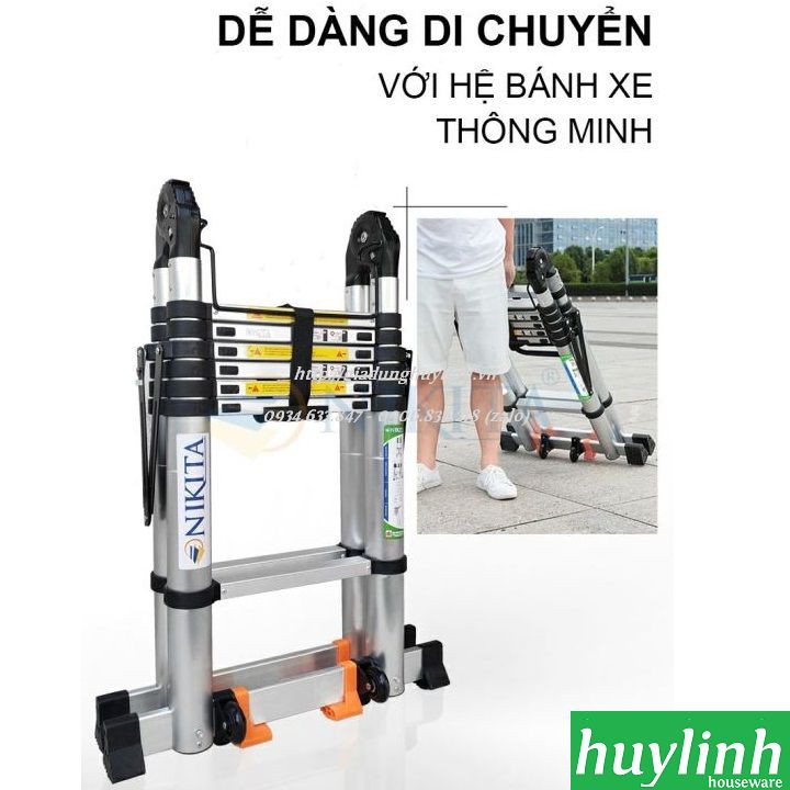 Thang nhôm rút đôi chữ A Nikita AR44 - 4.4 mét - Có bánh xe - Tải trọng 350kg
