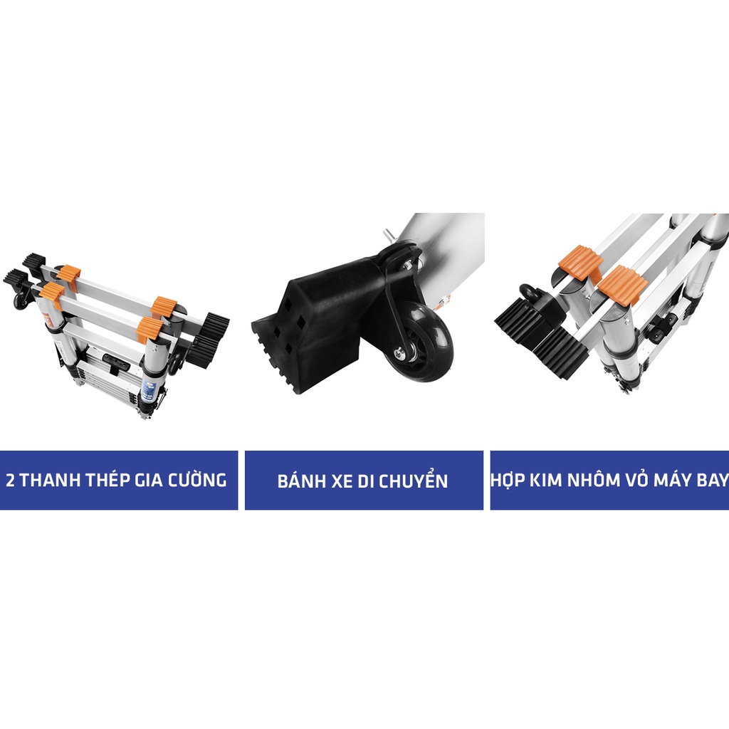 Giữa thang có 2 thanh khóa giúp thang chống trượt ra 2 bên, đảm bảo AN TOÀN TUYỆT ĐỐI khi leo cao.