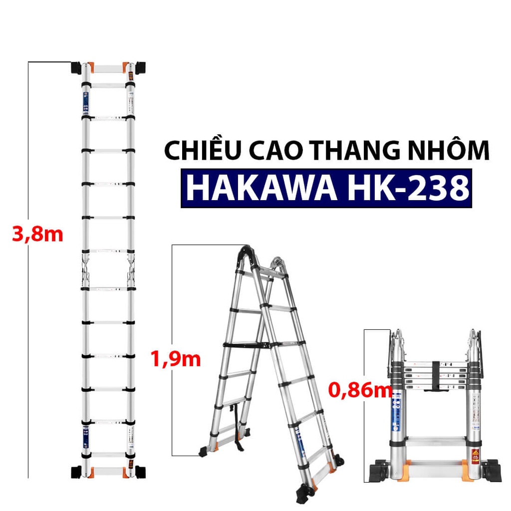 Thang Nhôm Rút Đôi Chữ A HAKAWA HK-238 (3,8m)
