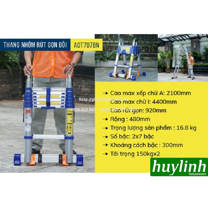 Thang nhôm rút đôi chữ A Advindeq ADT708BN - 5 mét - Model 2021