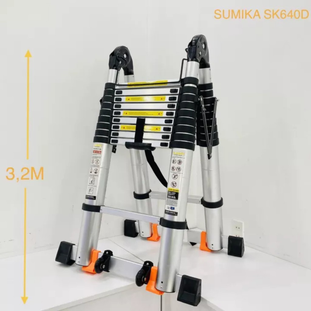 Nhà cửa & Đời sống > Dụng cụ & Thiết bị tiện ích > Thang || Thang nhôm rút đôi chữ A SUMIKA SK640D (A:3.2M;I:6.4M) & SK760D (A:3.8M;I:7.6M) NEW 2022 tải trọng 300kg, bảo hành 2 nămCòn hàng