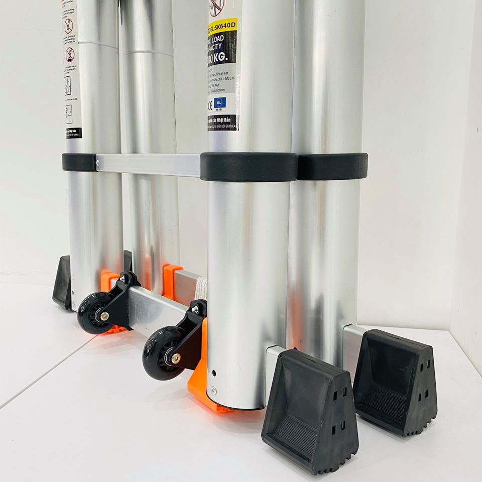 Thang nhôm rút đôi chữ A SUMIKA SK640D (A:3.2M;I:6.4M) & SK760D (A:3.8M;I:7.6M) NEW 2022 tải trọng 300kg, bảo hành 2 năm