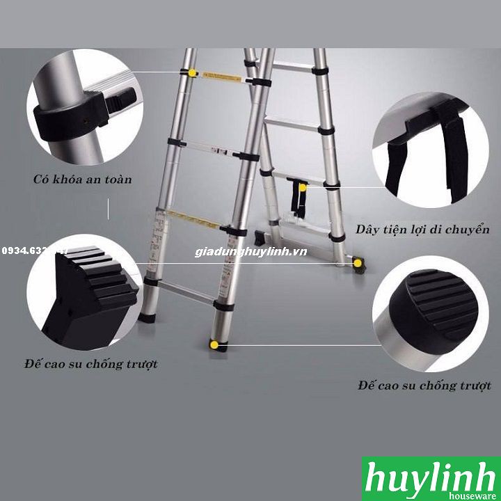 - Chân thang nhôm có đế cao su chống trượt, có độ bám dính cao đảm bảo an toàn trong quá trình sử dụng.