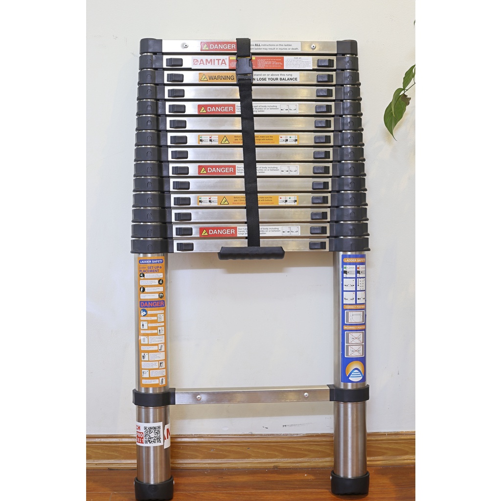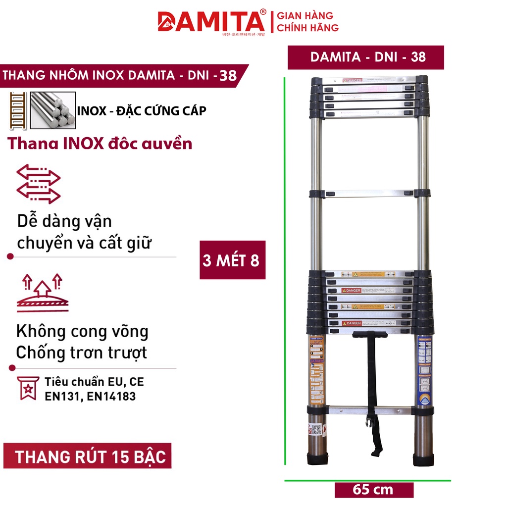 Thang nhôm rút đơn 3.8m INOX DAMITA 2022 mới cao cấp rút gọn đa năng đai an toàn nhựa ABS bảo hành 24 tháng FREESHIP 2h