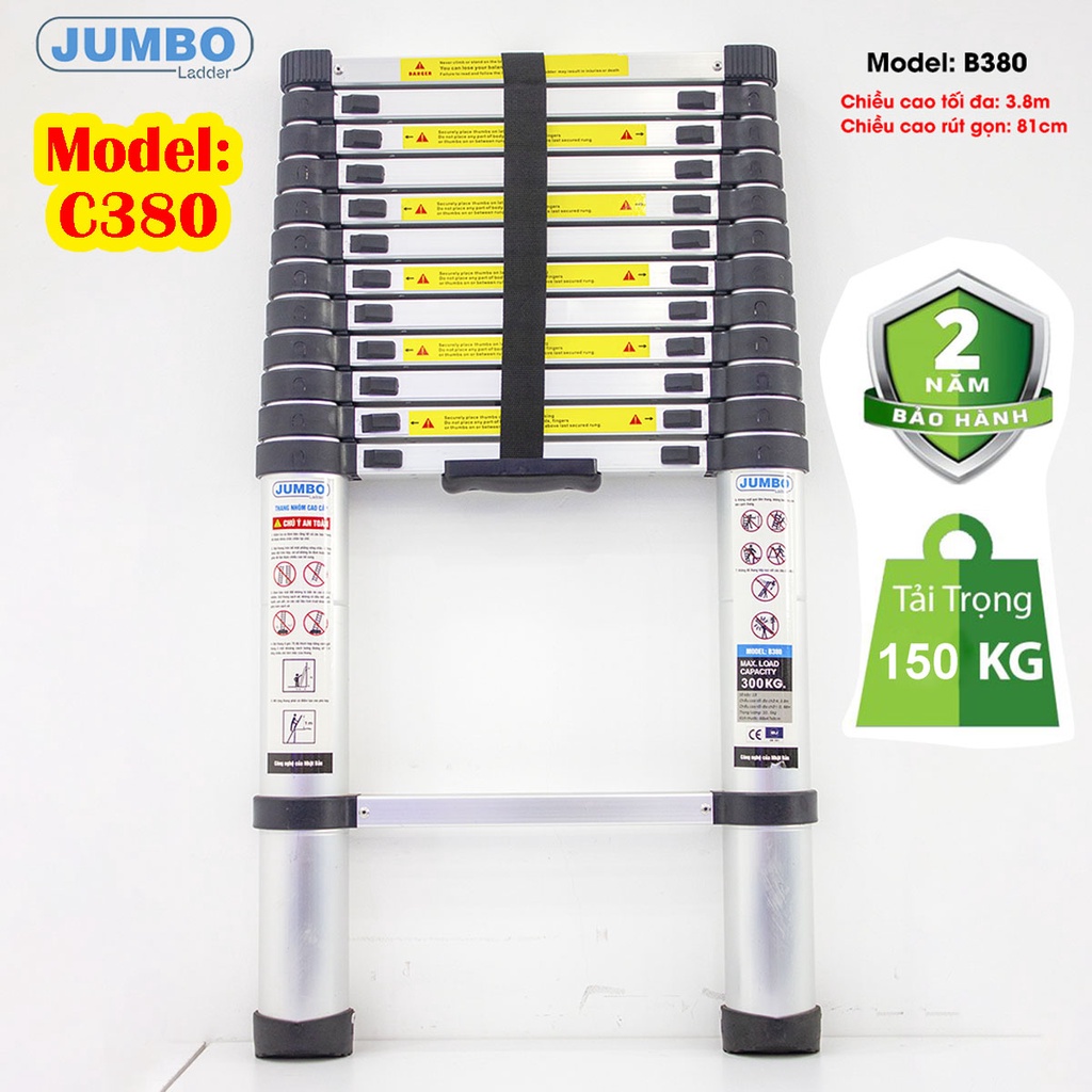 Nhà cửa & Đời sống > Dụng cụ & Thiết bị tiện ích > Thang || Thang nhôm rút đơn 3.8m Jumbo B380, tải trọng 300kg, bảo hành 24 thángCòn hàng