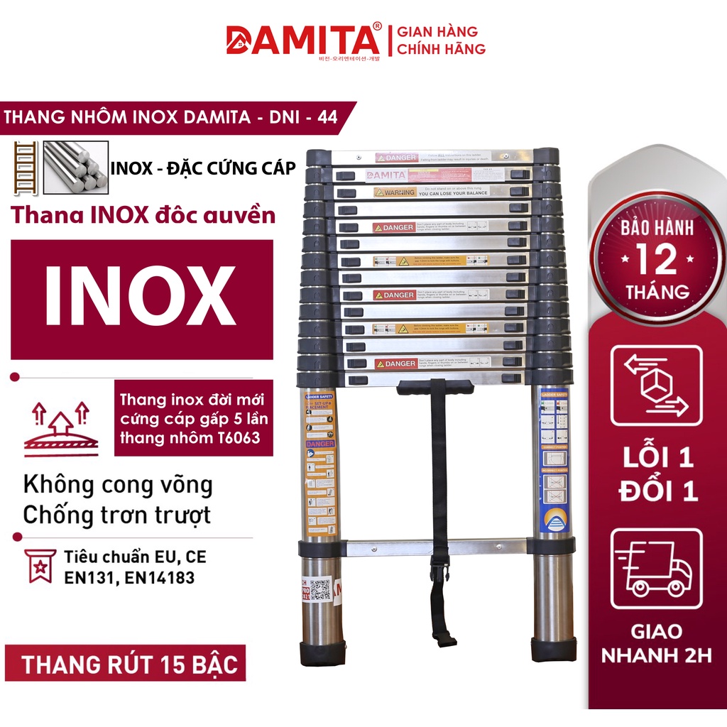☑️ Thang nhôm rút đơn DAMITA Hàn Quốc được cấu thành từ nhôm (hợp kim nhôm) đảm bảo độ chắc chắn trong suốt quá trình sử dụng và chống lại sự oxy hoá khi tiếp xúc với môi trường bên ngoài.