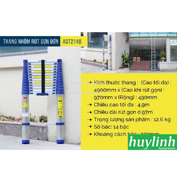 Giới thiệu Thang nhôm rút đơn Advindeq ADT214B - 4.9 mét