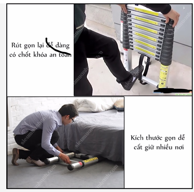 Kéo than lên nhẹ nhàng, rút thang lại bằng 1 nút bấm tiện lợi dễ dàng nên khi dùng không gặp khó khăn như sản phẩm thông thường khác.