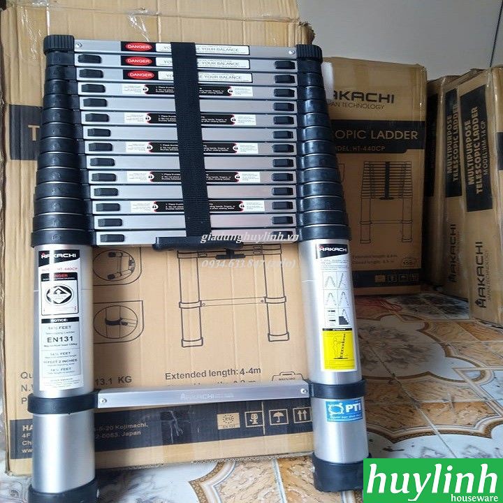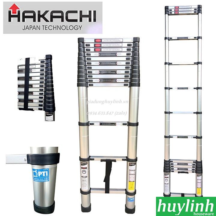 - Thang nhôm rút gọn Hakachi HT-380CP mở và đóng từng bậc, dễ dàng điều chỉnh chiều cao để phù hợp với công việc của bạn. Chỉ cần mở thang Hakachi bằng cách kéo dài từng bậc đến chiều cao mong muốn và bạn leo lên.
