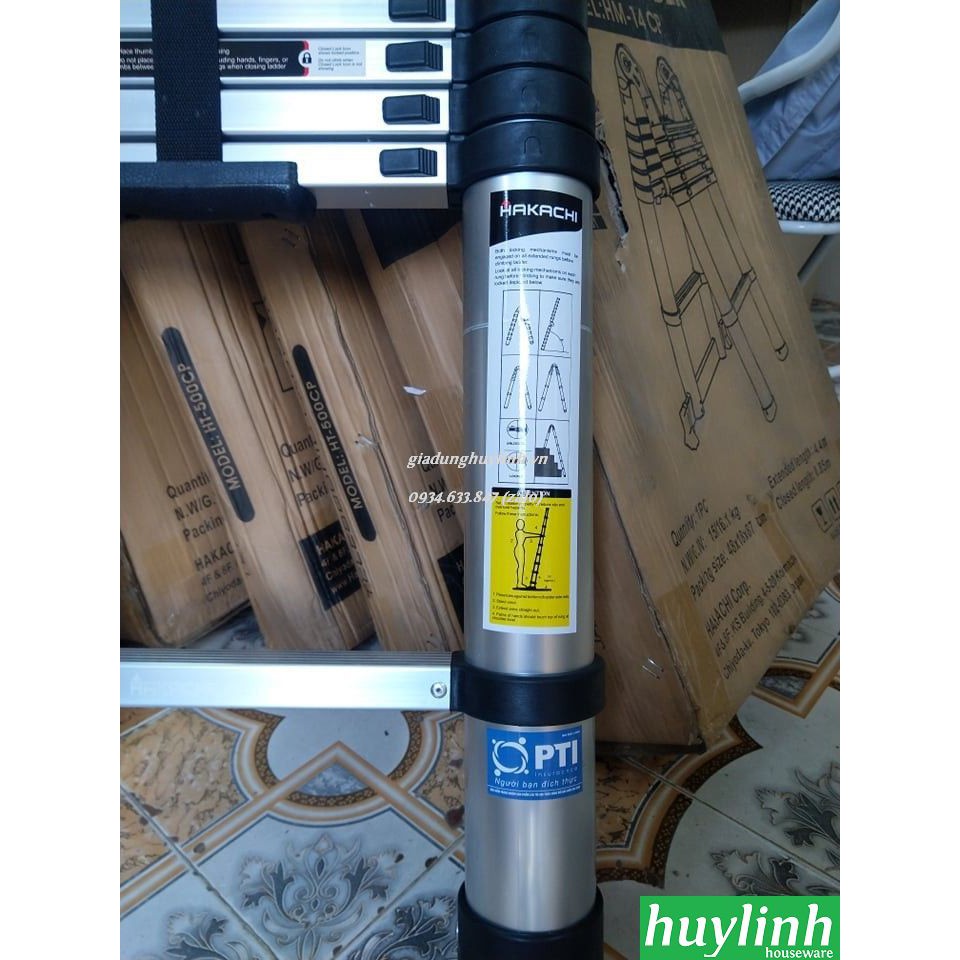 - Với chiều cao tối đa 4,1m khi mở thang, 14 bậc, trọng lượng nhẹ và kích thước khi rút gọn chỉ hơn 89 cm nên Hakachi HT-410CP thiết kế thông minh, đa năng, bền bỉ và an toàn tuyệt đối cho người sử dụng chắc chắn sẽ là lựa chọn hoàn hảo cho gia đình, công ty bạn.